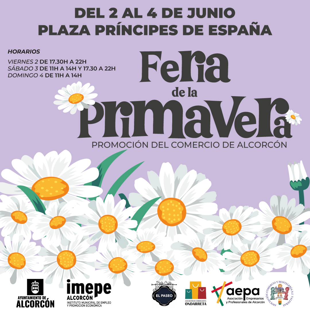 Desde este VIERNES 2 DE JUNIO Y HASTA EL DOMINGO 4 DE JUNIO, se celebrará la Feria de primavera del comercio de Alcorcón en donde se podrán visitar las 20 casetas que se instalarán en la Plaza de Príncipes de España de Alcorcón.