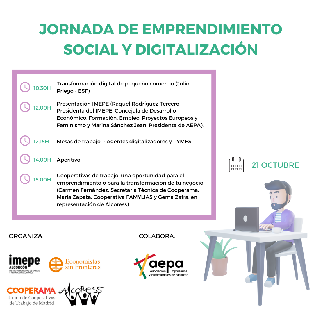 El próximo viernes 21 de octubre se celebrará la Jornada de Emprendimiento Social y Digitalización, con la participación de diversos organismos, tanto colaboradores como organizadores.